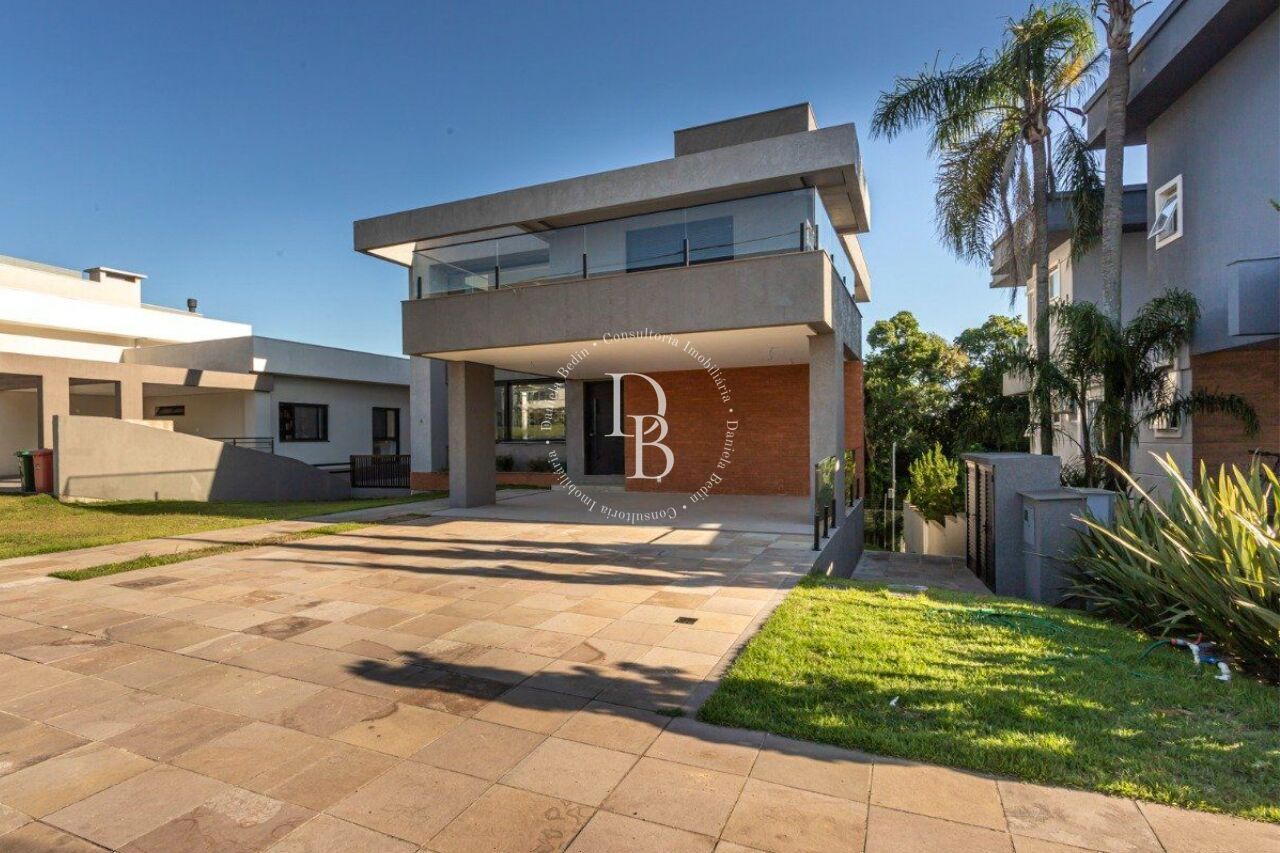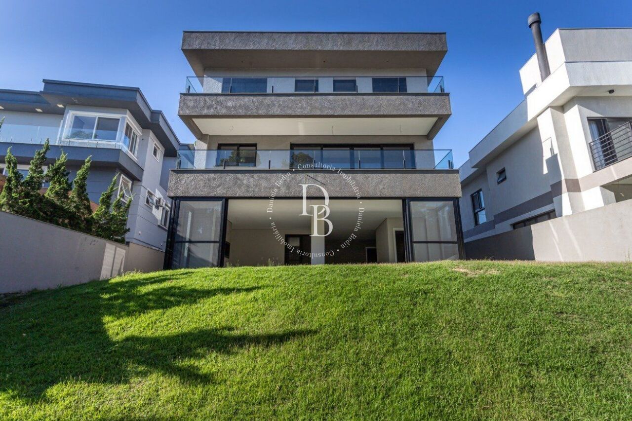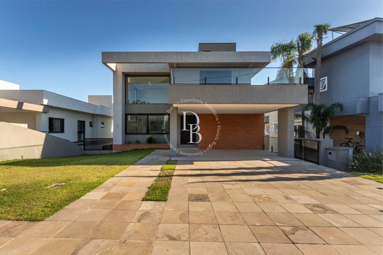 Casa ampla em estilo contemporâneo, com 4 suítes, sendo 01 no térreo com opção de home office, amplo living com pé direito duplo, sala de estar e jantar com cozinha em conceito integrado.